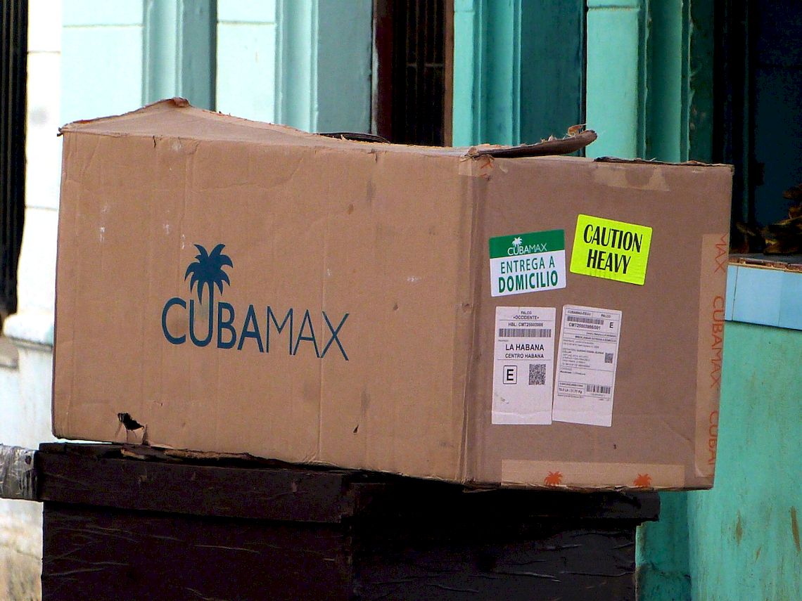 Caja desechada de paquetería de Cubamax en La Habana. Foto: AMD.