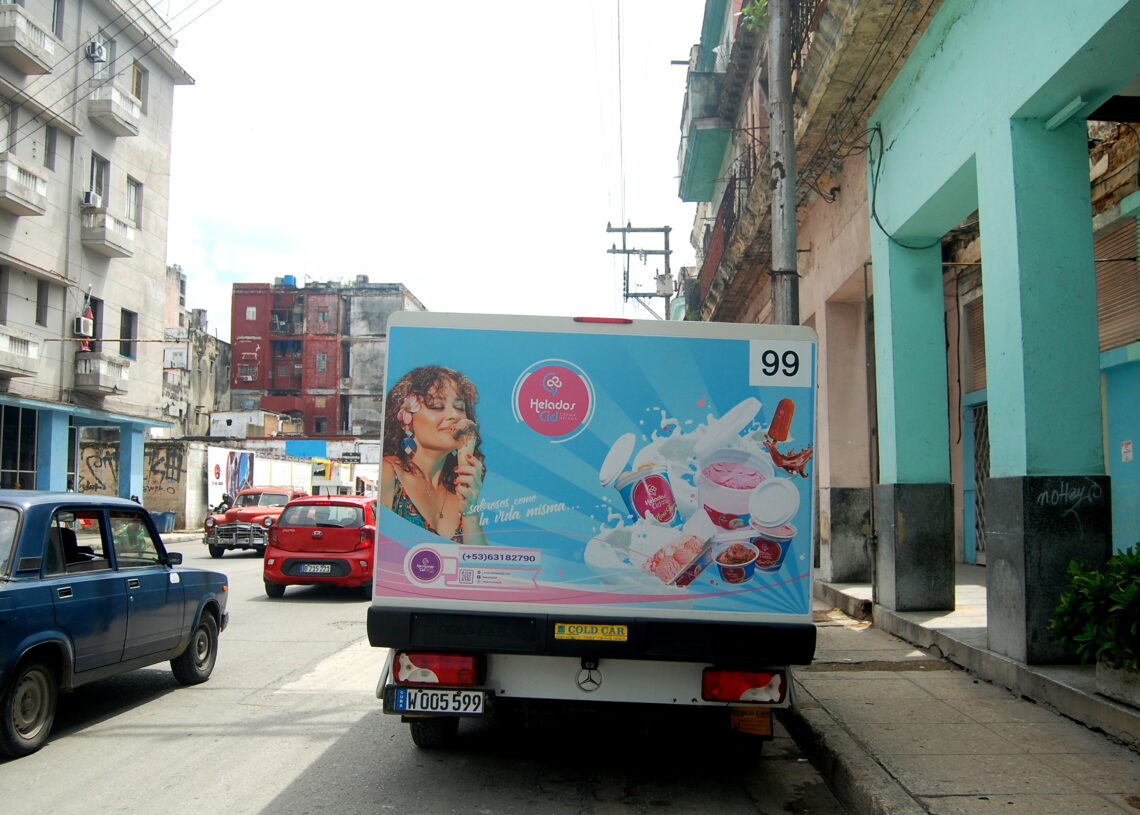 Un transporte de la marca privada de helados Cid en una avenida de La Habana. Foto: AMD