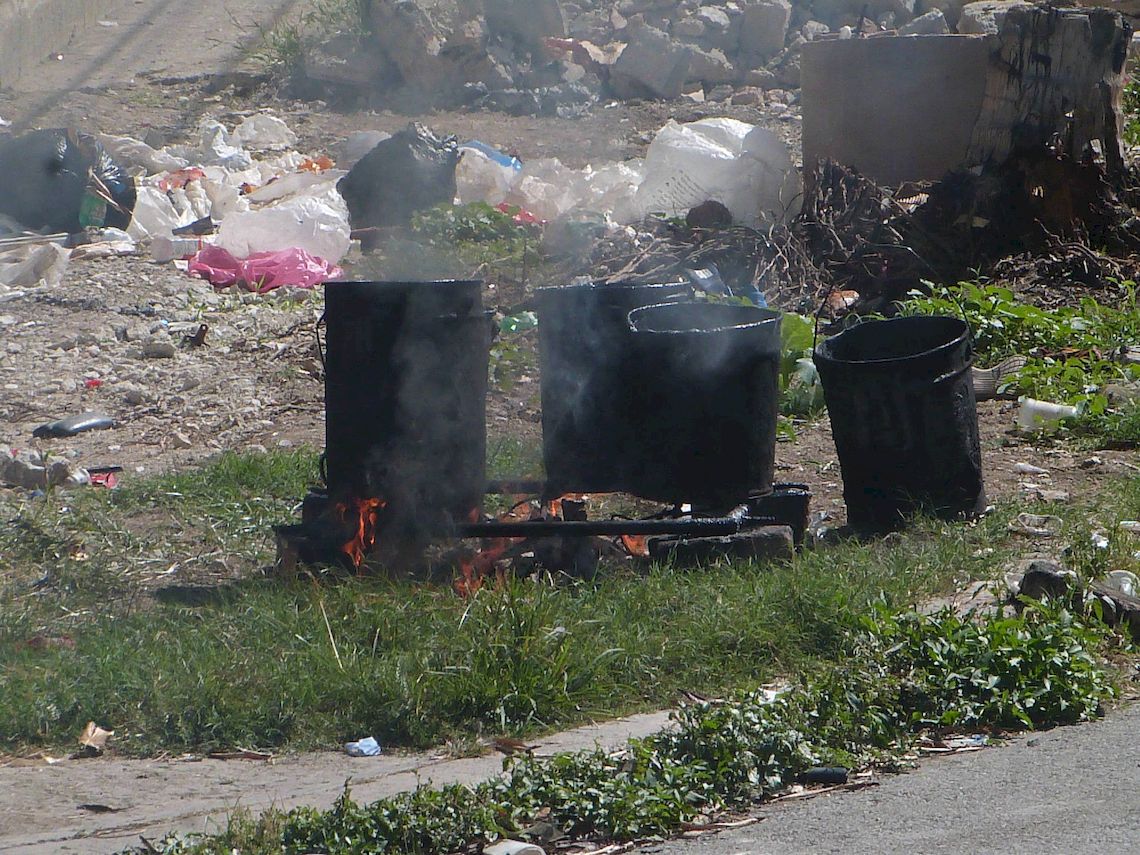 Cocinando con leña en medio de un parterre muy cerca de la calzada de 10 de octubre en La Habana. Foto: AMD