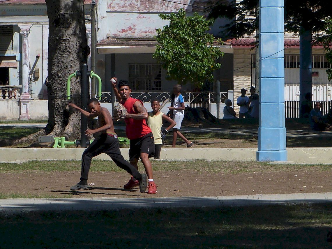 Jóvenes juegan béisbol en el parque de Santos Suárez, tal vez como ecos del recién concluido Clásico. Foto: AMD.