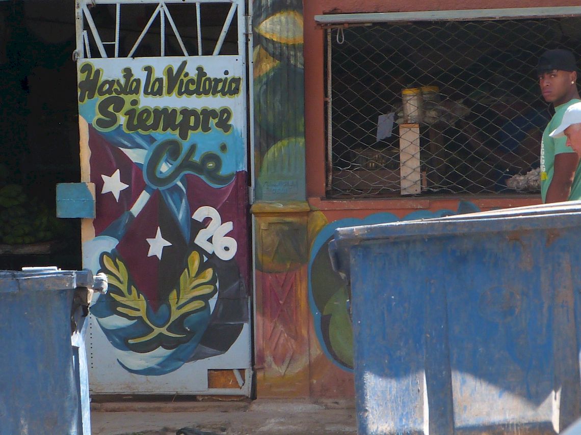El histórico lema guevariano en un establecimiento estatal de la calzada de 10 de octubre. Foto: AMD