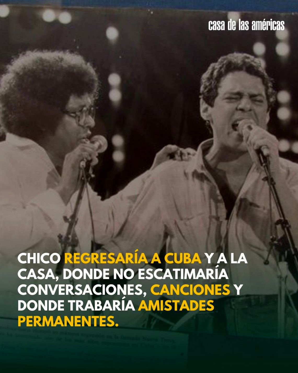 La Casa de las Américas sirvió de anfitriona de un encuentro apto para la memoria cultural de América Latina: la reunión entre dos de los más importantes cantautores del subcontinente, el cubano Silvio Rodríguez y el brasileño Chico Buarque de Holanda.