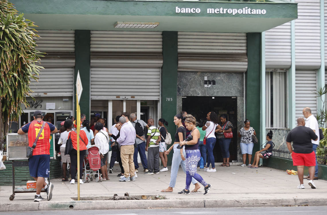 Las restricciones para extraer efectivo de los bancos (estatales), los problemas de los canales digitales por los prolongados apagones y la profunda crisis que sufre la isla, que paraliza la actividad económica, han multiplicado las filas delante de las entidades bancarias.