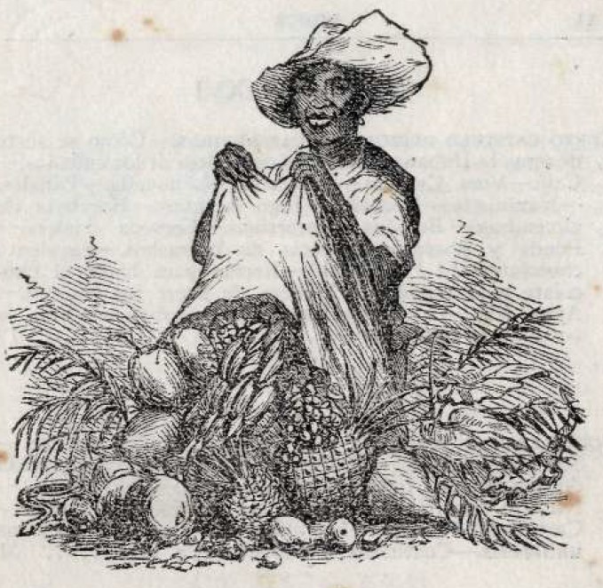Grabado de una típica vendedora de frutas en el siglo XIX. Foto: Tomada de Cuba a Papel y Lápiz.