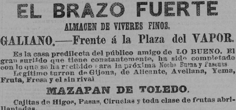 La revisión de decenas de números digitalizados del antiguo Diario de la Marina patentiza que desde Jijona arribaban importantes partidas de turrones contratadas por comercios de La Habana. En fecha tan distante como diciembre de 1884, La Nueva Viña —tienda de comestibles y bebidas en la esquina de Águila y Barcelona— ofrecía turrones de jijona, alicante, frutas y yema a 75 centavos. Surtidos similares se vendieron hasta finales del siglo en El Brazo Fuerte, El Progreso del País, Cuba Cataluña y La Flor Cubana, los principales almacenes de víveres finos de la calle Galiano; también en La Habanera, de Obispo; y en La Viña, de la calle Reina.