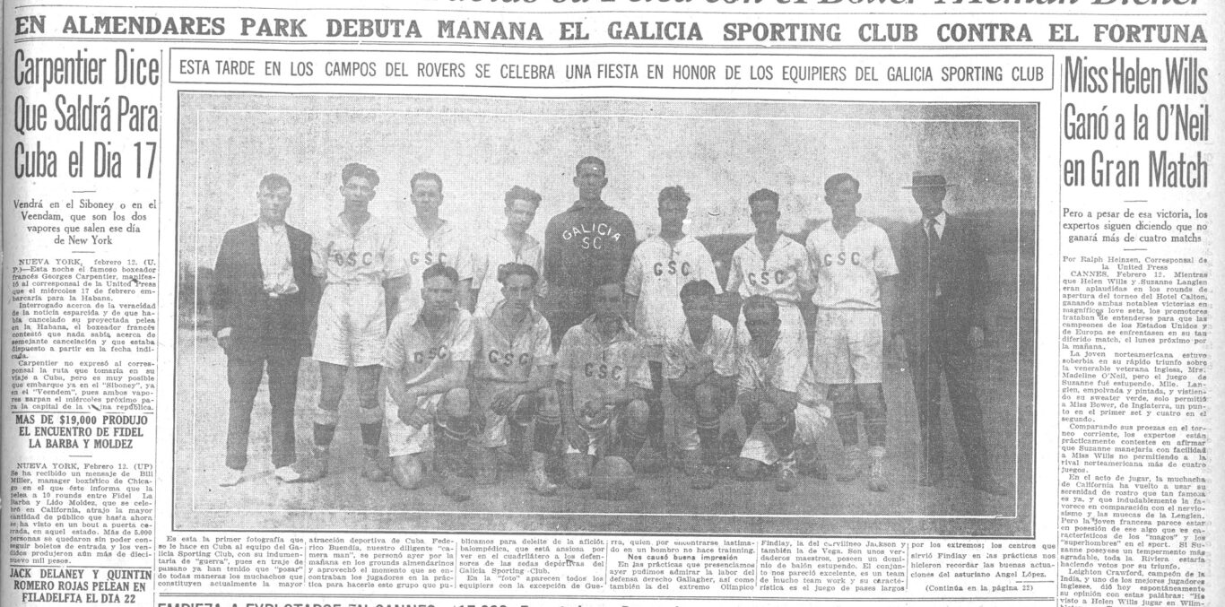 “Realmente el equipo del Galicia Sporting Club posee un record que justifica el optimismo de su presidente señor Juan Gallego, quien ha hecho manifestaciones en el sentido de que ha de salir en esta serie que se aproxima por la puerta grande, que es la del éxito. Como una docena de partidos jugó este team en la Liga Internacional de Estados Unidos, ganándolos todos por un margen que es la mejor prueba de su valía […] 43 goals a favor y 8 en contra es un record que habla bien del conjunto”, subrayaba el Diario de la Marina.