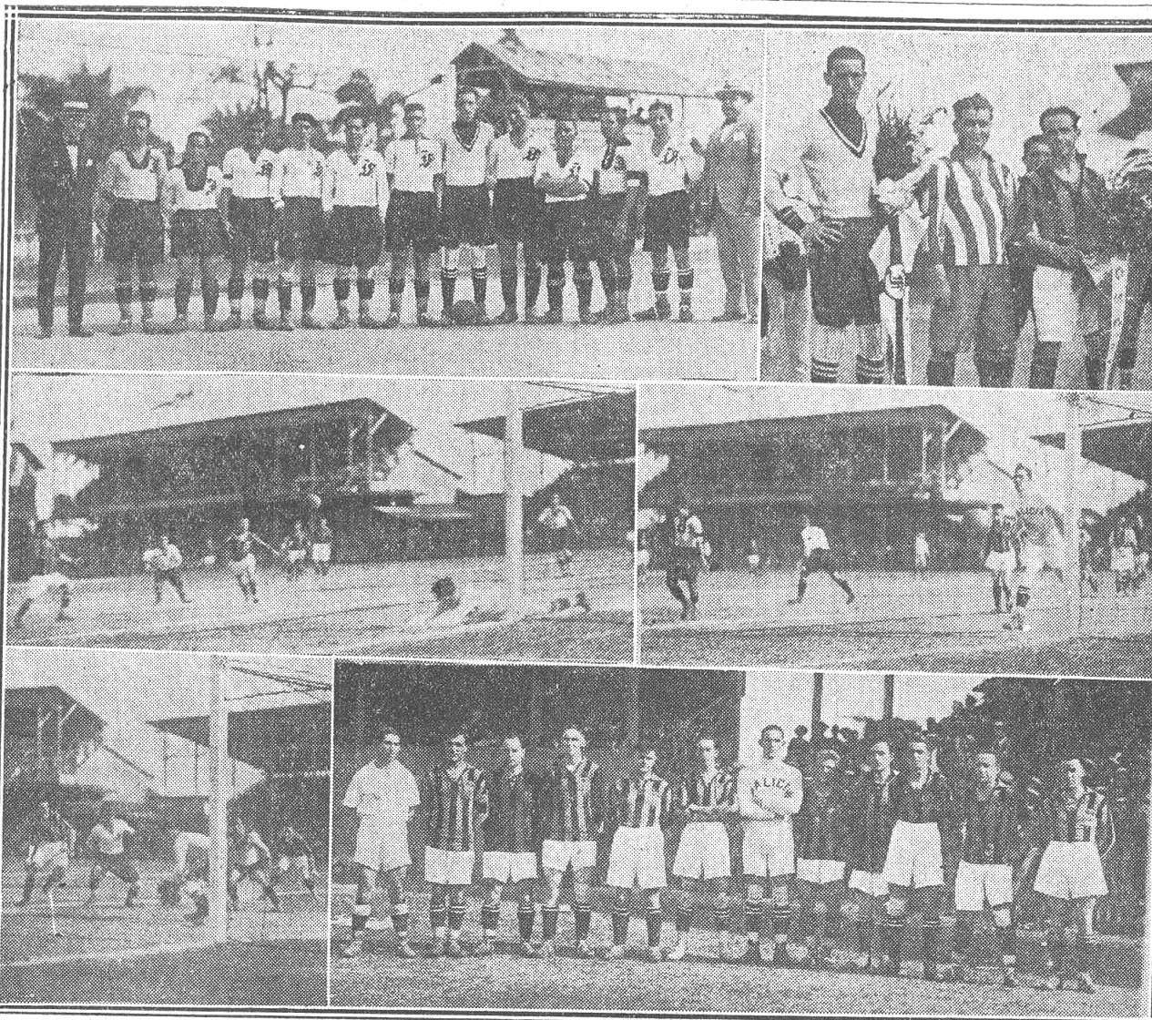 Diferentes momentos del primer partido internacional de fútbol celebrado en Cuba. Foto: Diario de la Marina, 15 de febrero de 1926.