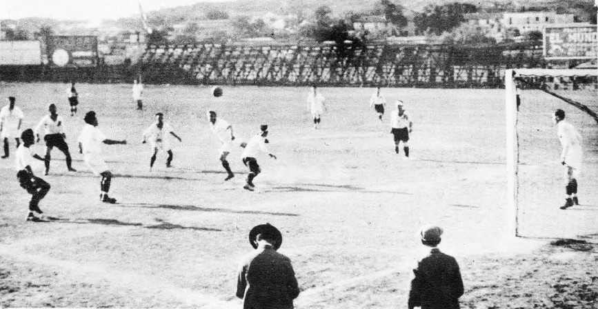 Momento del segundo choque entre el Galicia y el Fortuna en que se desquitaron los locales con marcador de 2-0. Foto: Carteles, 7 de marzo de 1926.