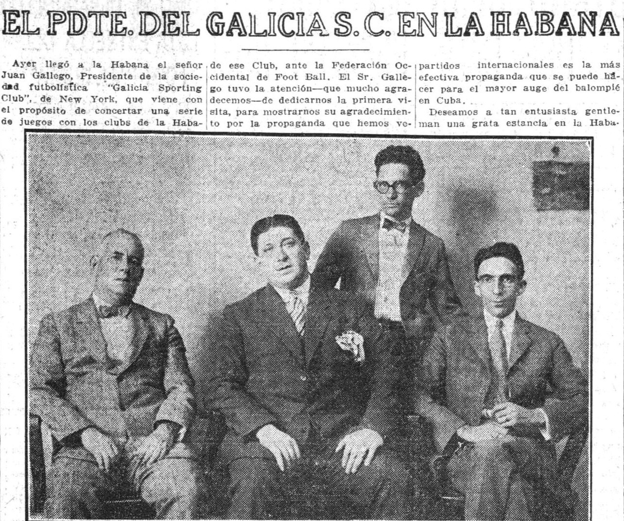 A esta sucinta biografía debe agregarse que el Galicia SC fue de los equipos estadounidenses pioneros en realizar una gira por el exterior, y en su caso el destino escogido resultó Cuba.
