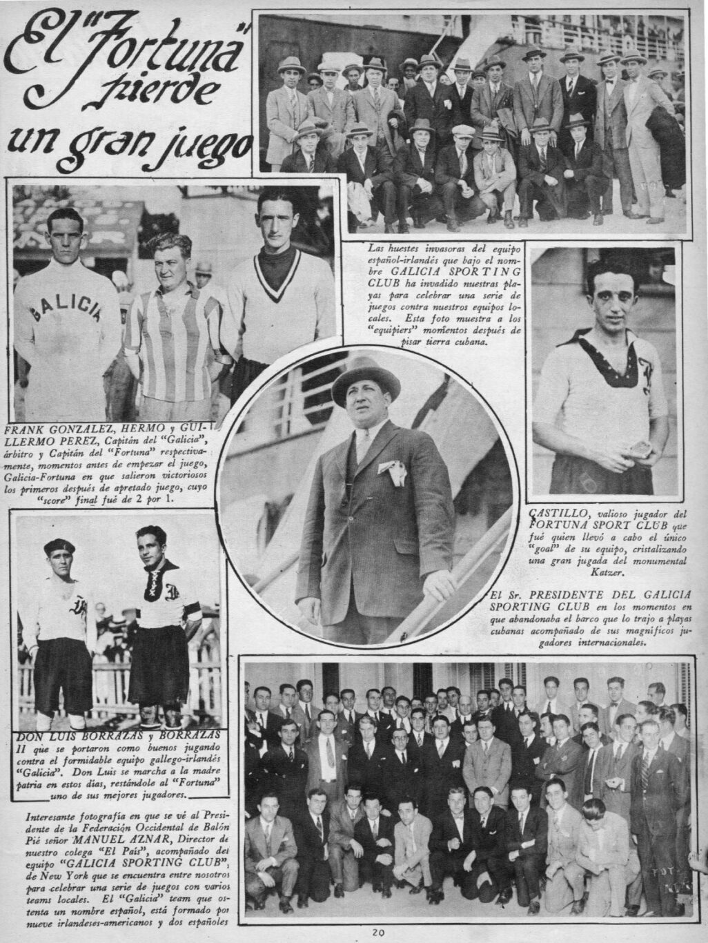 Una crónica futbolera sazonaba aún más la previa: “Serán nada menos que los ‘niños’ de la efe gótica los encargados de ‘tantear’ al Galicia Sporting, los llamados a recibir la primera paliza o dar la primera corrida de baqueta a los que nos llegan con tantas ínfulas y carteles, con tantos pergaminos y records. Vamos a ver si el Fortuna tiene la suerte de ponerle la primera en la frente, que de todo puede haber en la viña del Señor. Pero si tal no ocurriera, ahí tenemos a los gallegos del patio, los que todavía no se han ido a viajar a Nueva York, pero que están declarados de ‘peso completo’ en La Habana y sus cercanías. Los astures, que se encuentran en la mejor forma, es otro de los huesos donde pueden soltar las muelas, sin ser gran milagro, los galaicos neoyorquinos”. El terreno tendría la última palabra.