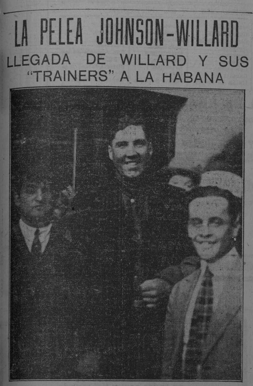 Pisando fuerte suelo cubano llegó Jess Willard en la tarde del 16 de marzo. El Diario de la Marina y El Fígaro de esa semana publicaron sendos retratos del muchachón de Kansas al bajar del Governor Cobb en el puerto habanero. Lucía un impecable traje oscuro con tocado, corbata y una amigable sonrisa. Lo custodiaban sus entrenadores, los anteriores campeones James Corbett y Bob Fitzsimmons, una decena de reporteros y un montón de turistas ansiosos de no perderse el show.