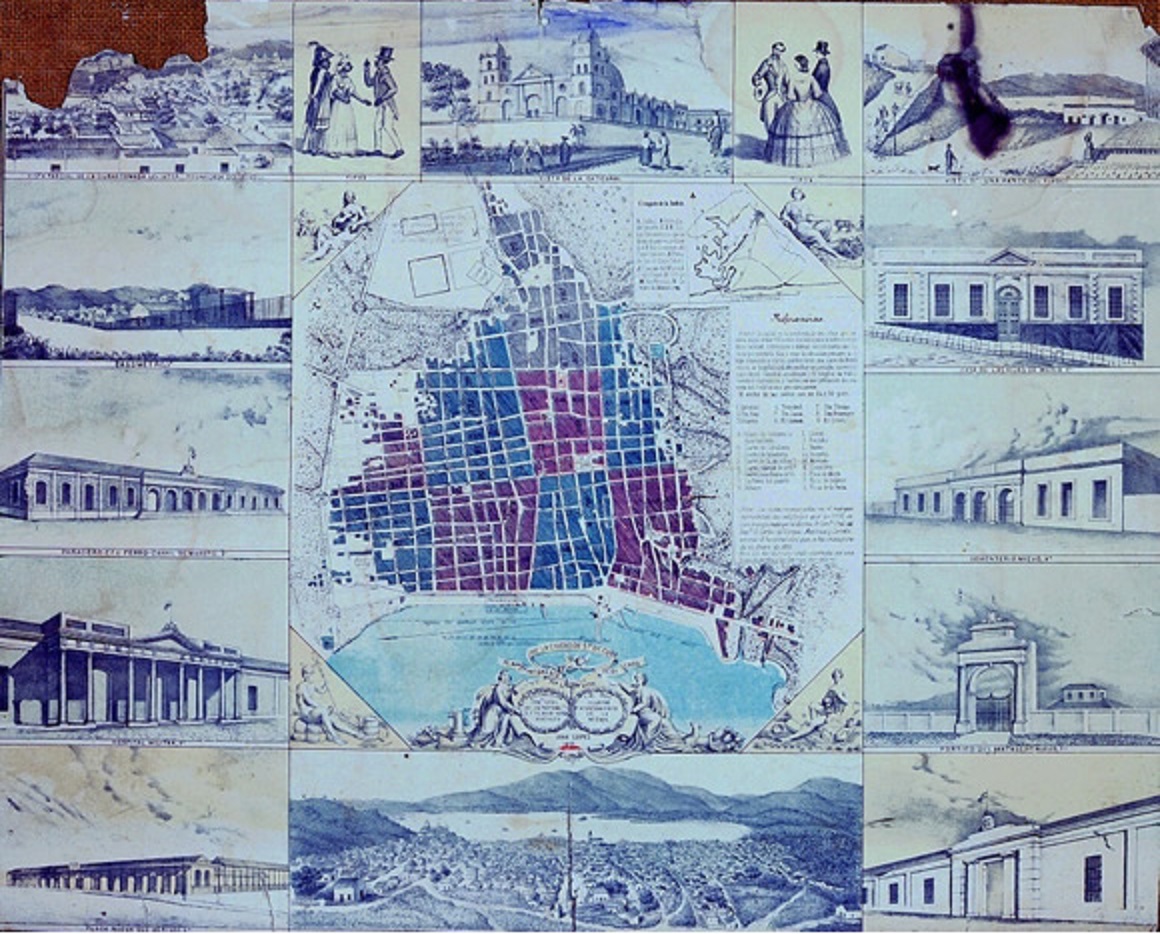 Plano y principales inmuebles de Santiago al momento de la llegada de Hippolyte Piron. Foto: Plano de don José López (1859).