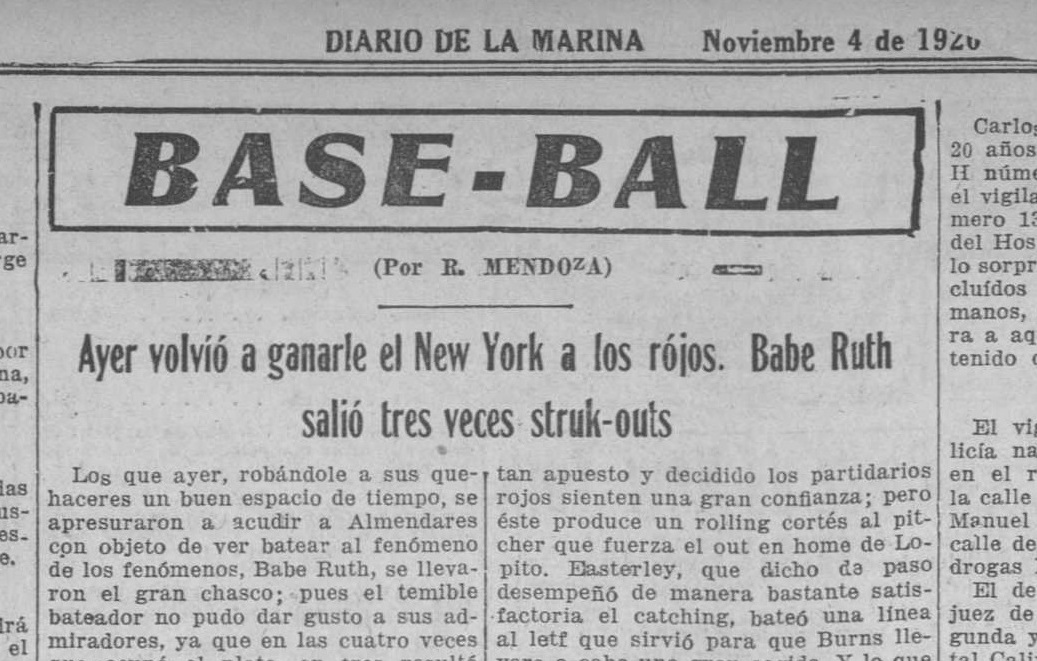 La visita fue un acontecimiento de resonancia internacional. “Babe Ruth está jugando béisbol invernal en Cuba”, anunciaba el Daily Illinois. “Según los informes, los barcos que van de Estados Unidos a La Habana están colocando placas de blindaje para evitar ser torpedeados por jonrones perdidos”. Pero el Bambino no pudo convertir la metáfora en realidad. Algunos justificaron su pobre exhibición alegando el clima caluroso; otros, que estaba ansioso por complacer a sus parciales y hacía swing a bolas malas.