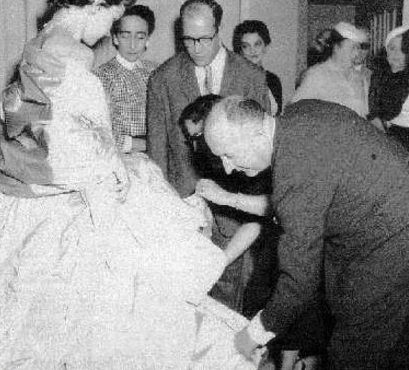 El famoso diseñador Christian Dior durante su visita a El Encanto. Foto: El País, octubre de 1956.