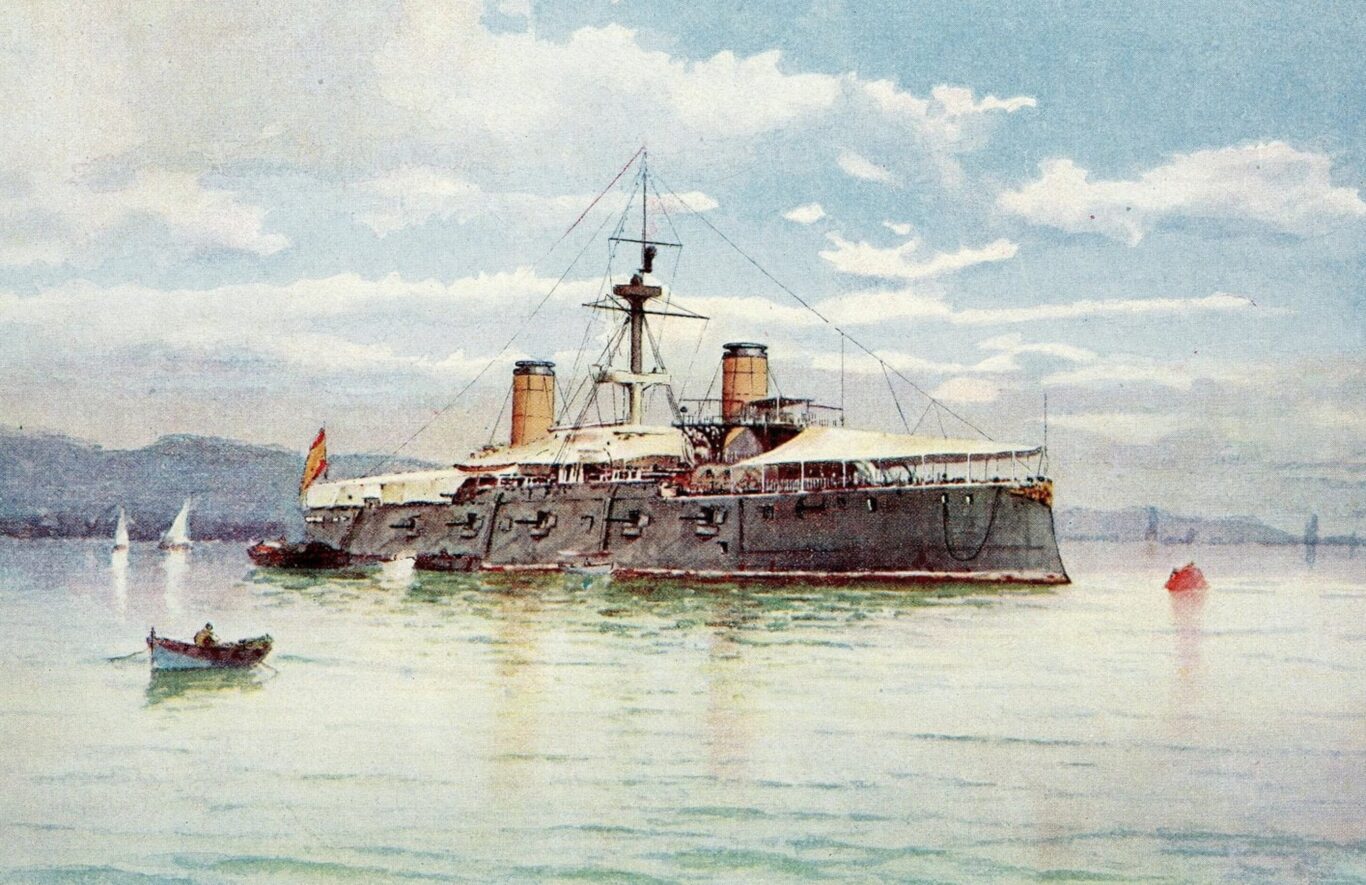 Su epitafio estaba escrito desde el mismo día de septiembre de 1896 cuando fue botado en un astillero de Génova. Tuvo corta vida. Para España significó el primer navío de acero inoxidable, promesa de barco invencible. Y acabó siendo la auténtica resurrección del espíritu quijotesco, pues al jadeo de los tambores de guerra no dio tiempo a montarle la artillería gruesa, y aun así el crucero se fue a las Antillas. Era, más bien, un símbolo. Iba a llamarse Giuseppe Garibaldi, pero tras su adquisición por el gobierno español se le rebautizó como Cristóbal Colón, en tributo al navegante. El día que la marinería del Colón arrió del mástil la bandera rojigualda, quedaría como alegórico naufragio de un imperio de cuatro siglos y el nacimiento de una leyenda sumergida.