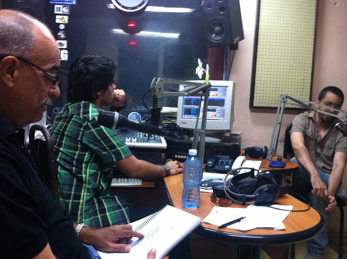 José Luis García (izq) en uno de sus programas en la radio, a los cuales invitó al autor de este texto, a la derecha.