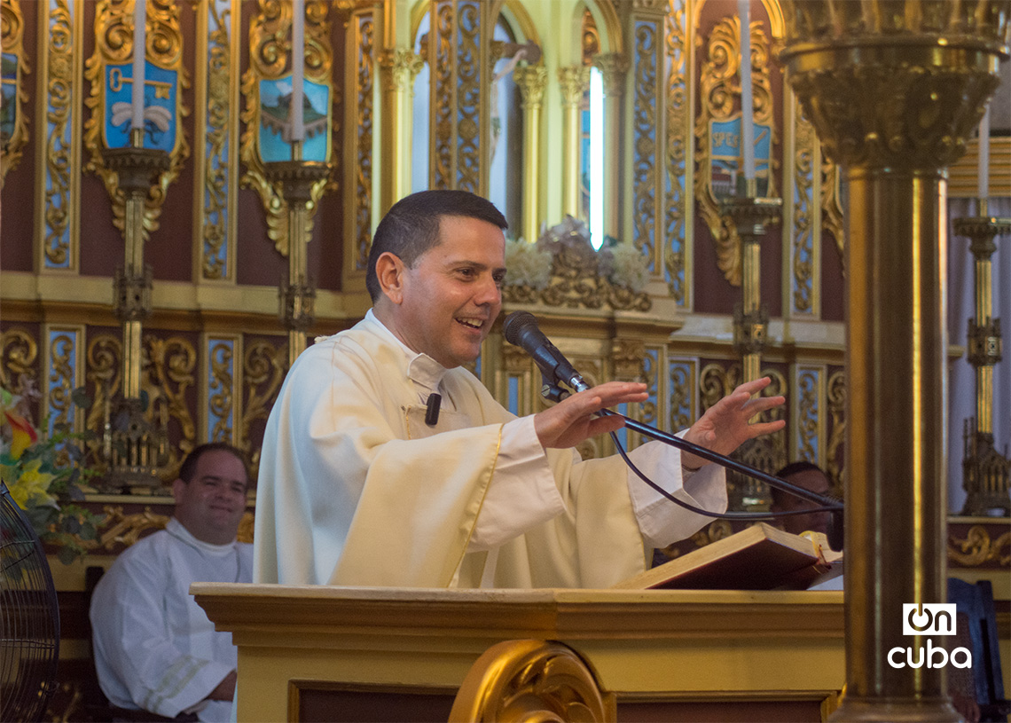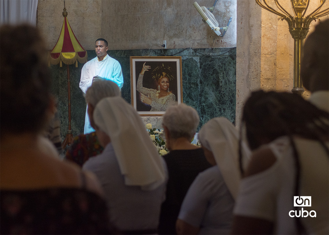 Una foto de “La Guarachera de Cuba” junto al altar presidió la ceremonia que, según expresó el párroco durante la misa, fue una petición de varios artistas cubanos.