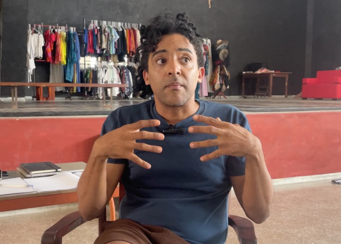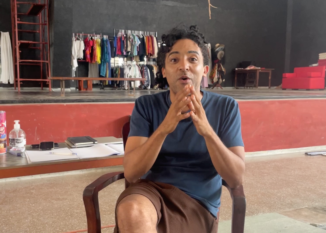 “Toda la obra se ha hecho en función de que la iluminación esté en disposición de que podamos hacerlo a nivel de plantas generadoras y mientras esté la luz, pues, se hará a nivel del teatro. En ese sentido, todo el montaje ha sido sutilmente creado en función de que lo que no desaparezca sea el teatro, porque amén de todo lo que puede existir, de toda la carencia, para mí lo importante siempre es que la gente tenga un espacio donde pueda verse, donde pueda sentirse.