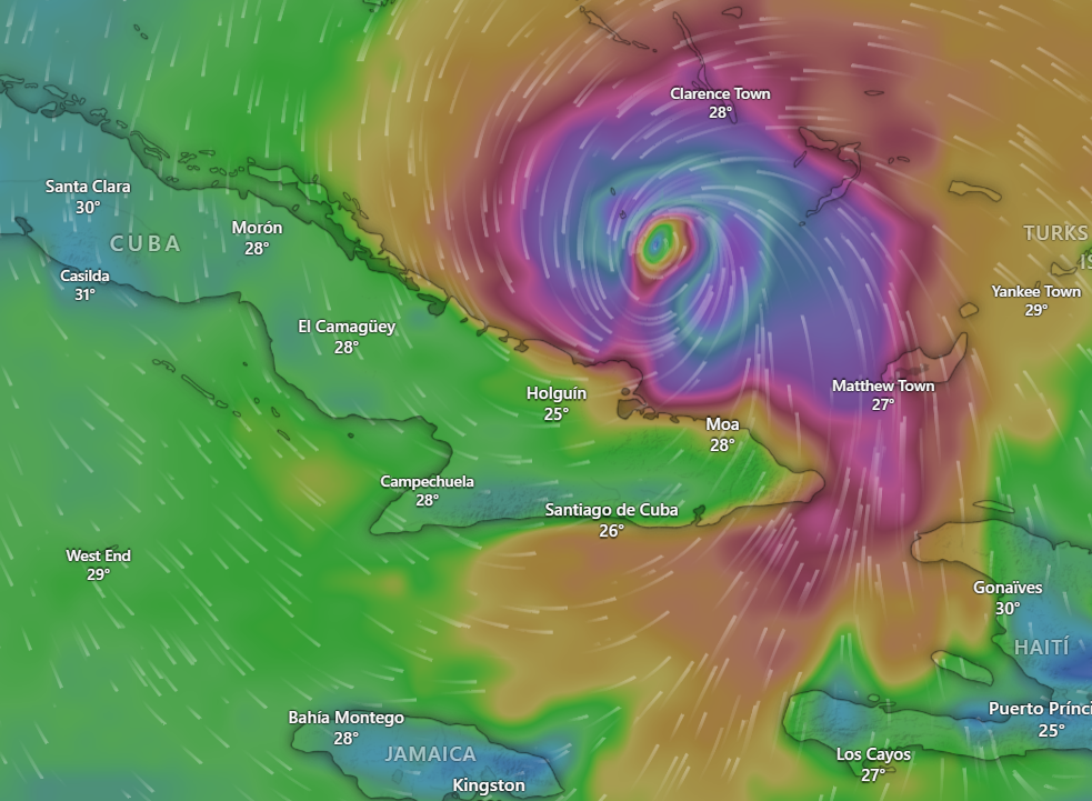 La región central del huracán Melissa estuvo desplazándose en su tránsito al norte sobre la provincia de Holguín, golpeando comunidades como Cueto, Mayarí y Banes.
