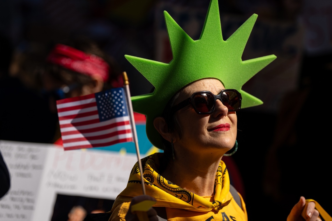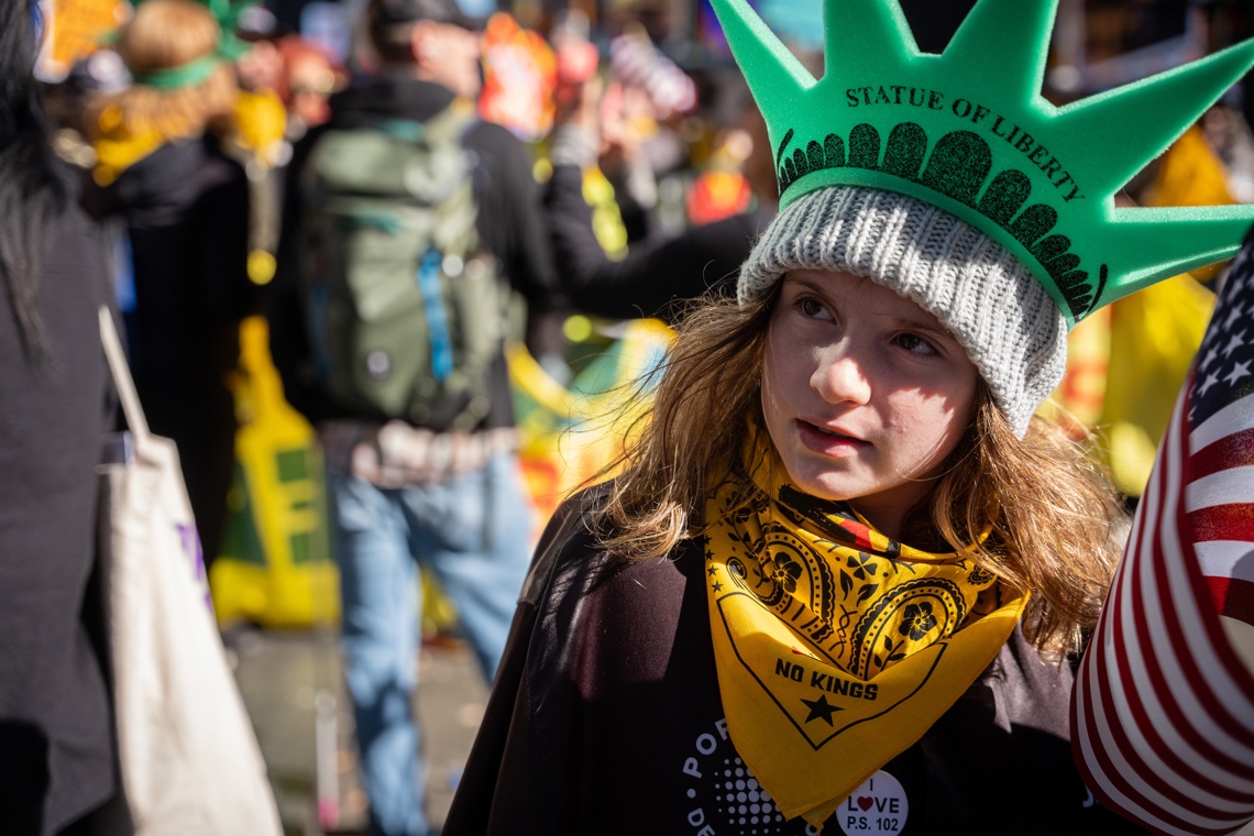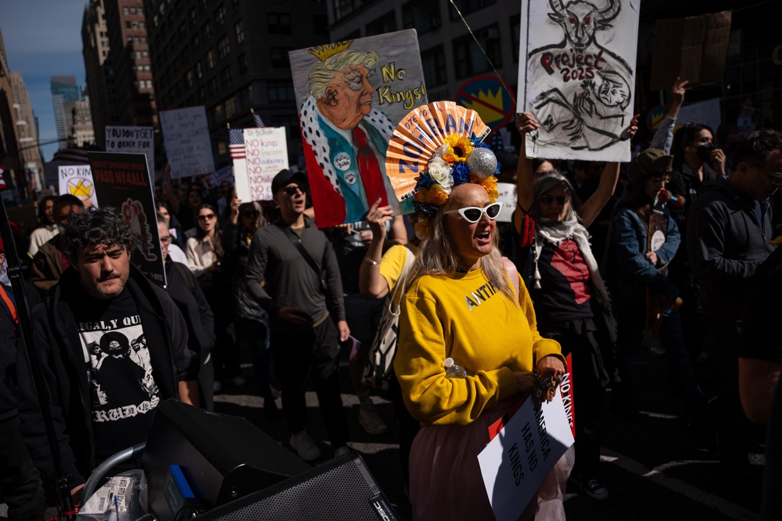 “El amarillo es un recordatorio brillante e inconfundible de que millones de nosotros estamos unidos en la creencia de que Estados Unidos pertenece a su gente, no a los reyes”, indica un volante en el sitio web de “No Kings”.
