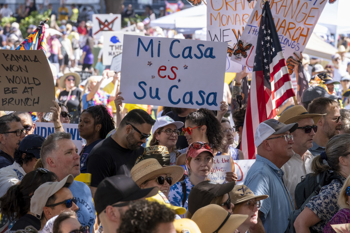 Los organizadores, liderados por el Indivisible Project —una organización progresista de base con una oficina nacional y miles de filiales en ciudades y pueblos de todo el país, que surgió cuando Trump ganó en 2016— enfatizaron el compromiso con la “acción no violenta”, capacitando a decenas de miles en técnicas de seguridad y desescalada ante el alza de violencia política.