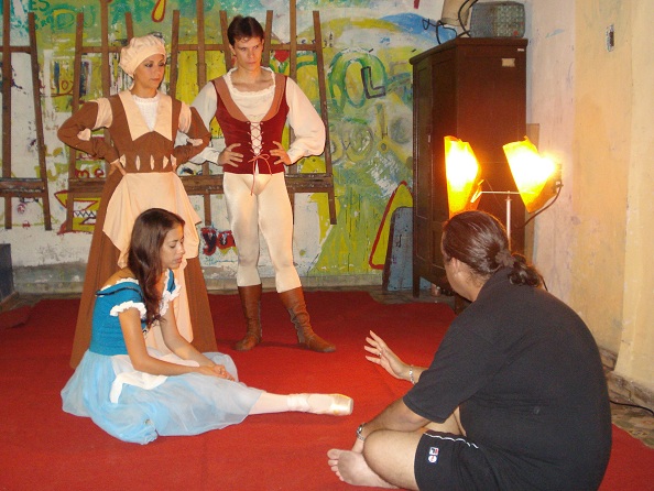 Con Joel Carreño, Anette Delgado y Aymara Vasallo, preparando “La muerte de Giselle” para la exposición “Enigma”. La Habana, 2006.