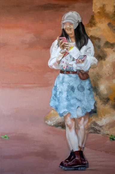 “Laura”, 2024. De la serie “Ragazze dell’Europa”. Óleo sobre tela, 90 x 60 cm.