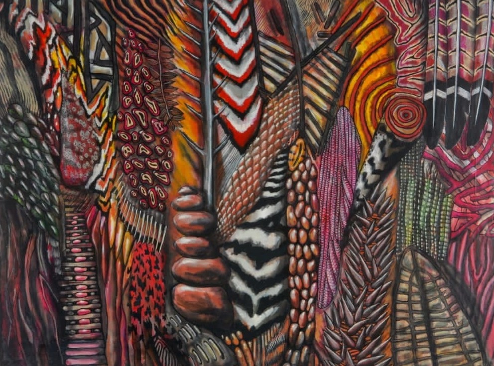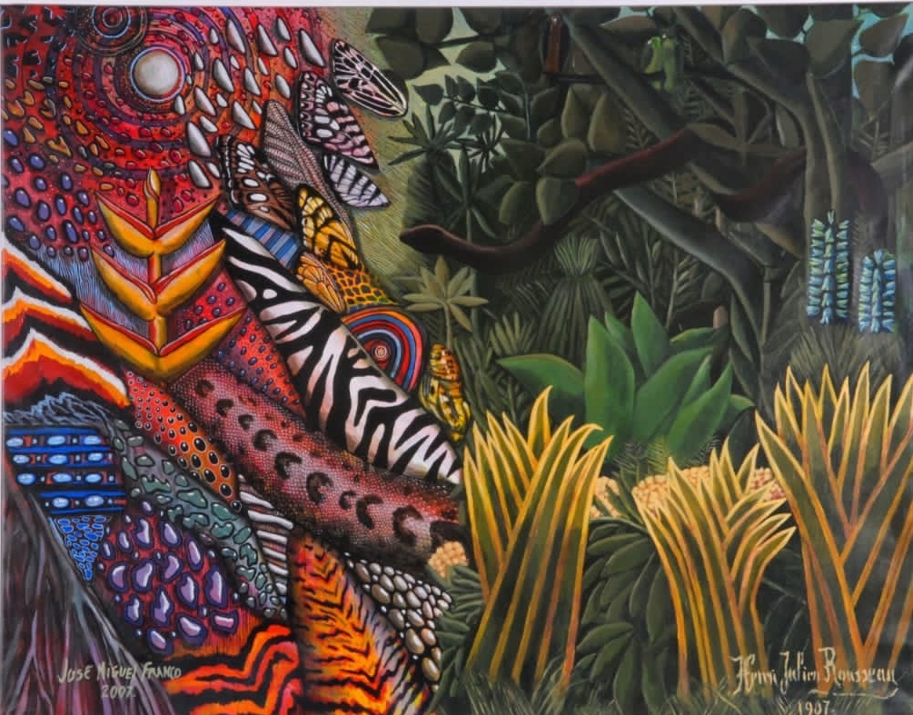 Rauschenberg, Andy Warhol, Keith Haring, Weselman, Lichtenstein… Tomé la idea del pop de utilizar un objeto y agrandarlo, pero en este caso, en vez de latas o productos comerciales, eran elementos de la naturaleza; también viene de ese movimiento el recurso de pegar elementos al lienzo o que salieran de él, como hacían Oldenburg, Johns y Rauschenberg.