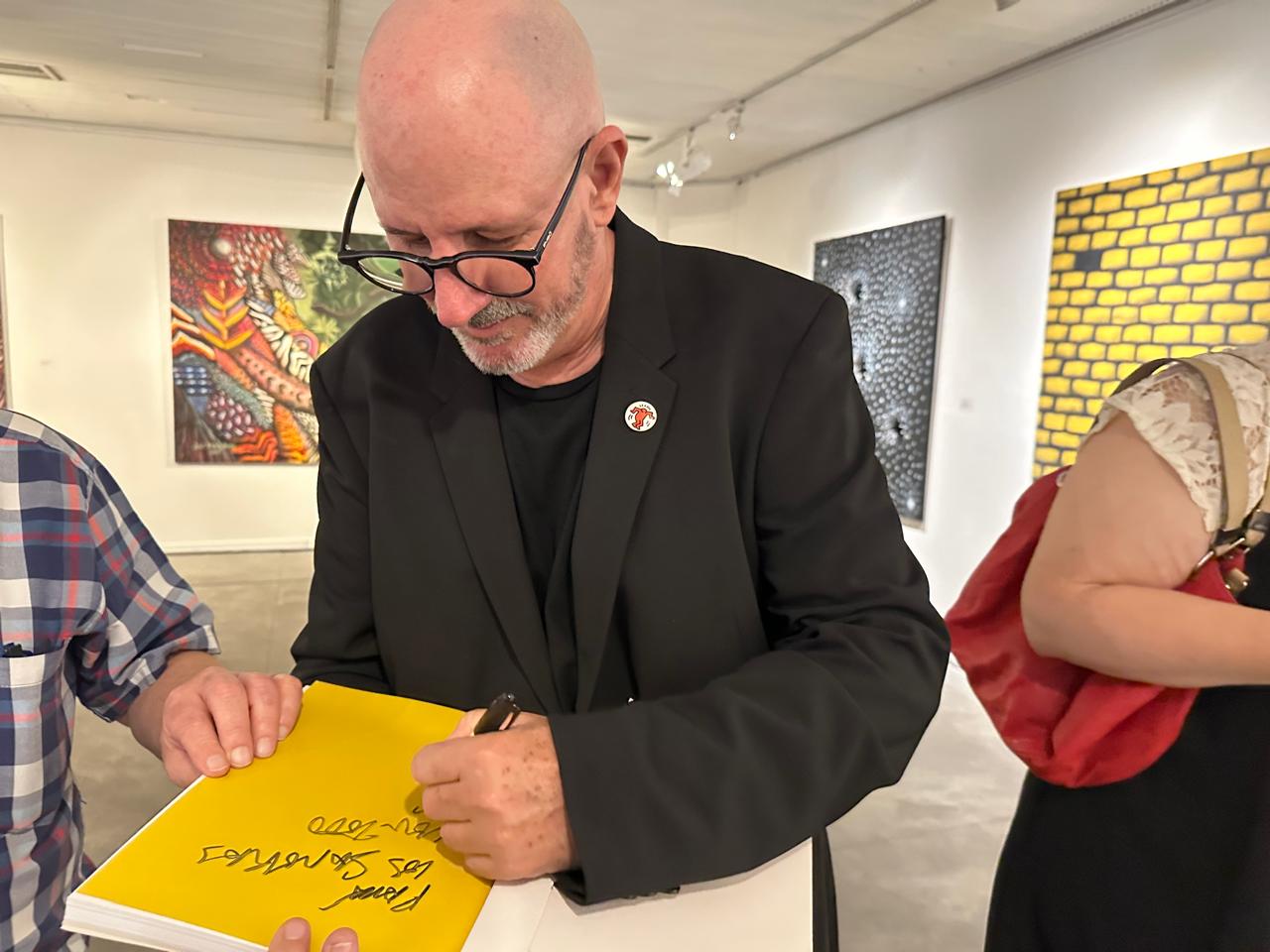 Atareado, en pleno proceso de montaje de las obras, lo abordamos.