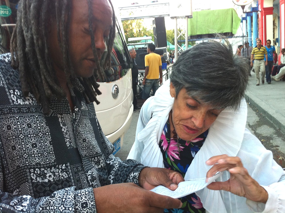 Uno en ocasiones no da la importancia que merecen las personas que coinciden consigo en la vida; cada quien nos deja alguna enseñanza, y Martica nos habrá dejado las suyas. Al menos una vez le hice una foto junto al trovador Gerardo Alfonso, a quien en la intersección de Frexes y Maceo, en la ciudad de Holguín, mostraba un texto escrito por ella. He buscado durante días la imagen en mis archivos, hasta que la encontré.