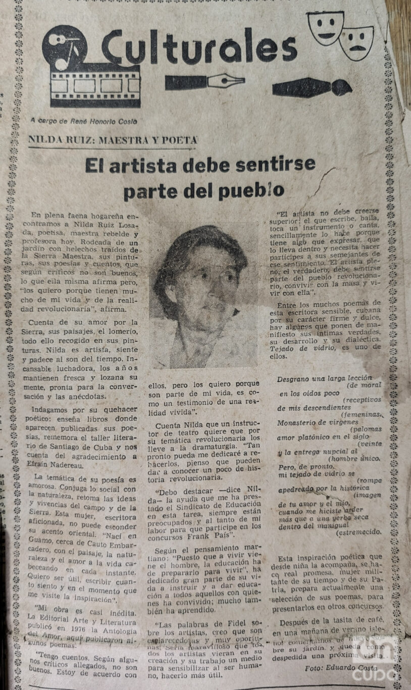 Mi abuela tenía un reuma terrible y se enfermó mucho por el clima tan húmedo de la Sierra. Por eso se mudaron para la ciudad de Santiago de Cuba y fueron a vivir a la casa de Pancha, la madre de mi abuelo. Allí convivían casi todos los hermanos con sus familias. Dice mi mamá que eran como doce o trece personas alrededor de la misma mesa. El amor por el magisterio de mi abuela y la falta de una casa propia fueron los hilos que luego bordarían la historia de mi familia en La Isla.